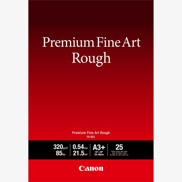 Papel Fine Art Rough Premium A3+ de algodón de alta calidad desarrollado para ofrecer la mejor calidad de imagen con tinta pigmentada. Su textura rugosa es ideal para dotar de profundidad a una imagen y darle un toque tridimensional. Tanto los fotógrafos profesionales como los entusiastas de la fotografía y amantes del arte disfrutarán imprimiendo fotos y otras obras de arte en este papel. Apto para el almacenamiento a largo plazo, este papel cuenta con un lujoso tacto, y una rugosidad y un grosor adecuados para que tu obra de arte brille en todo su esplendor. Al usarlo en combinación con la tinta LUCIA PRO original de Canon, ahora con una fórmula optimizada, se consiguen resultados de impresión llenos de color y densidad en los tonos negros. Además, gracias a la base del papel 100 % de algodón, se garantiza la longevidad y durabilidad de la imagen.