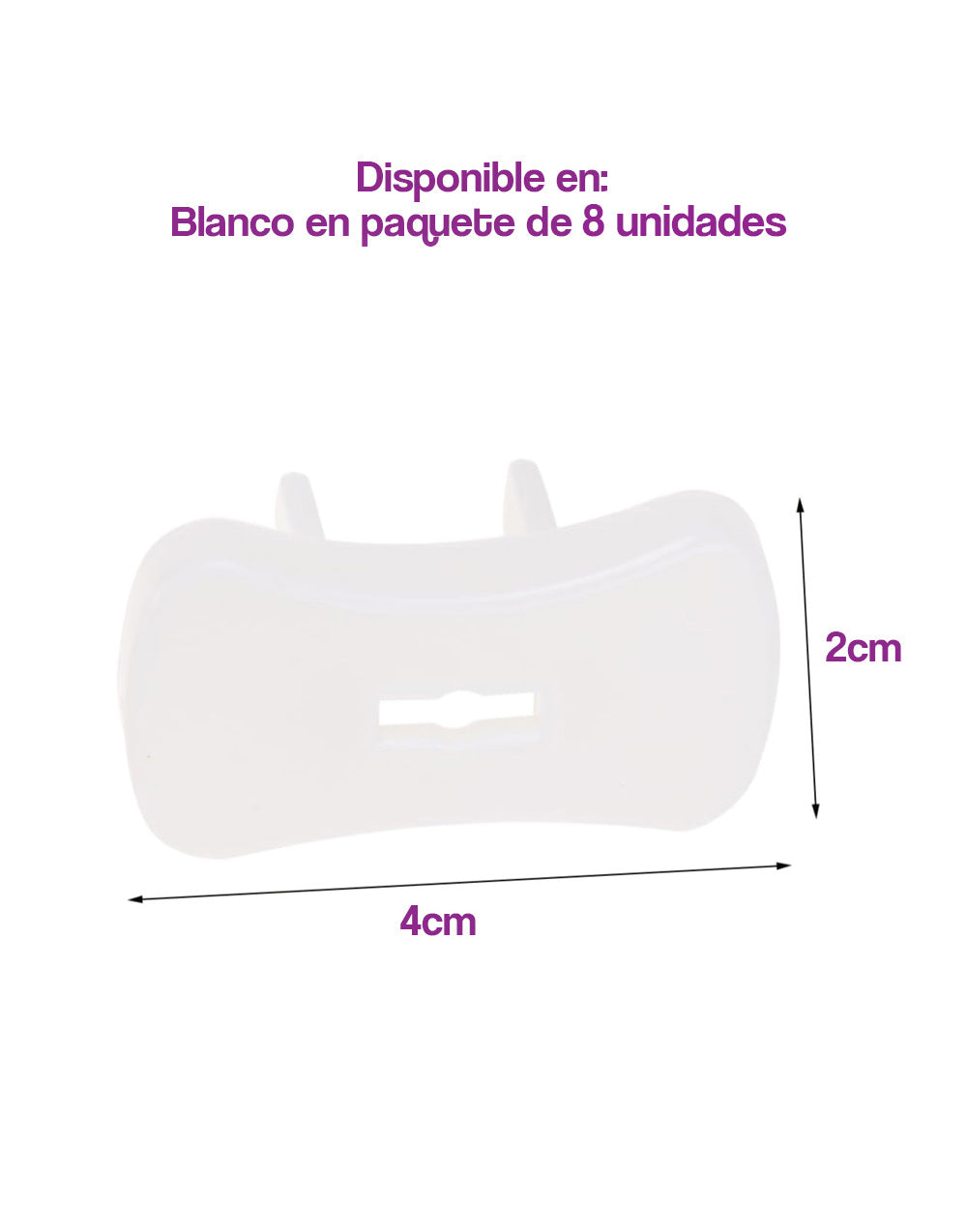 Diseño resistente a los niños, los adultos pueden retirarlas facilmente. Disponible en paquetes de 8 unidades y dos remplazos de tapas.