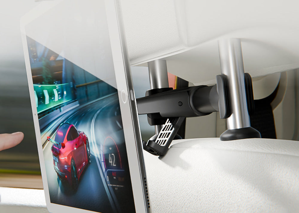 Su diseño práctico y resistente permite mantener el smartphone en una posición cómoda y segura, ideal para viajes, entretenimiento de pasajeros y uso en carretera.