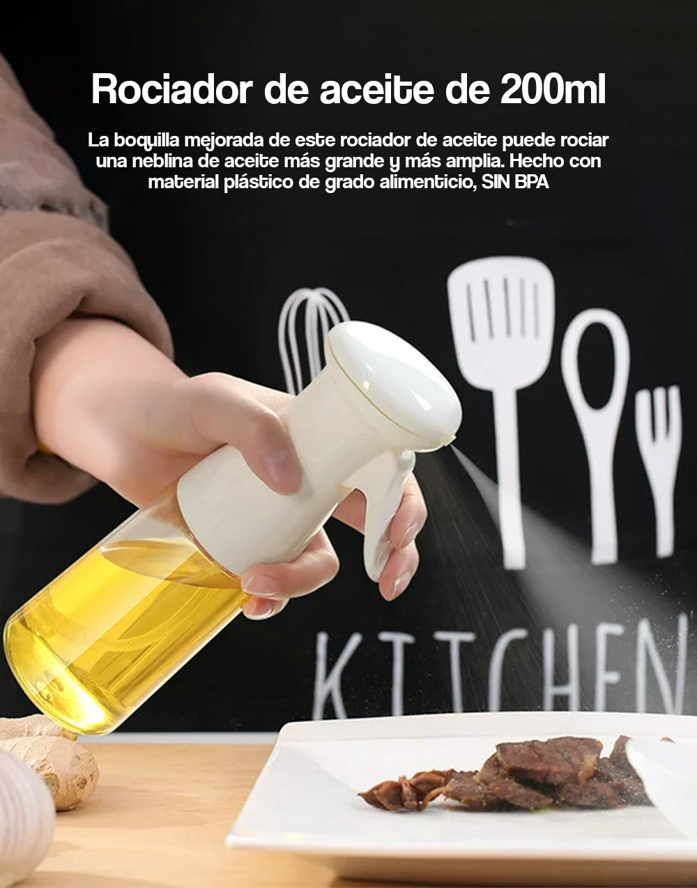 El rociador de aceite produce una niebla uniforme y pura. Logra una dieta más saludable con menos aceite.