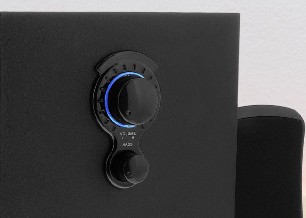 Compatible con entrada universal de 3.5 mm, se conecta fácilmente a PCs, laptops y televisores. Sus controles integrados de volumen y graves permiten ajustar el sonido según tus preferencias, mientras que su diseño elegante en color negro lo convierte en una solución práctica y estética para tu espacio.