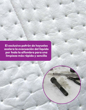Exclusivo patrón de hoyuelos que acelera la absorción del líquido en toda la alfombrilla para una limpieza más rápida y fácil.