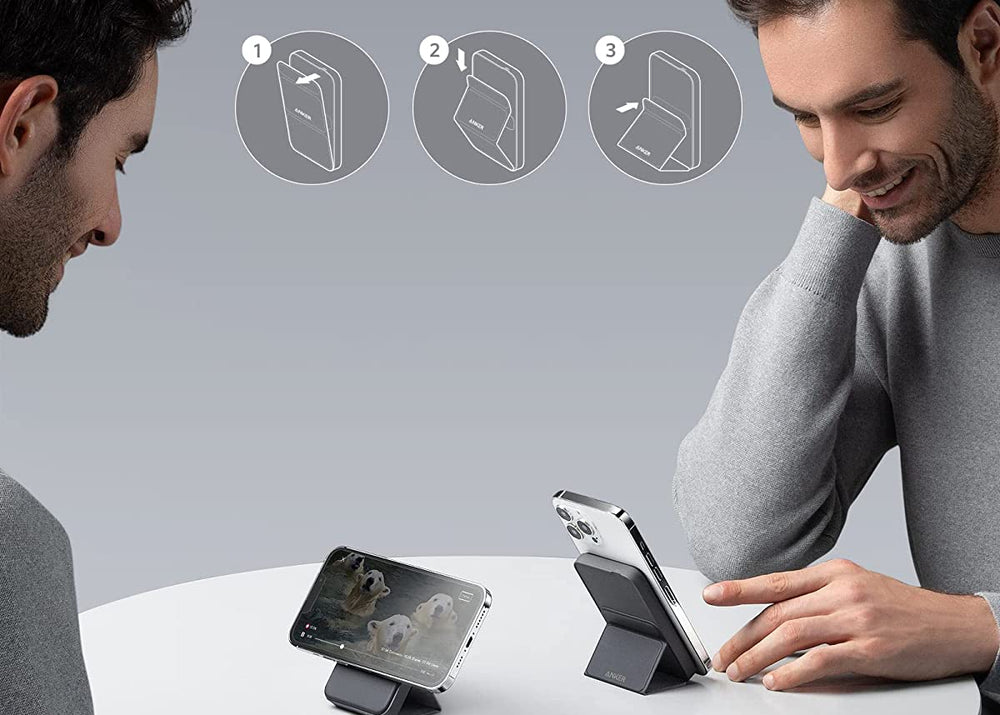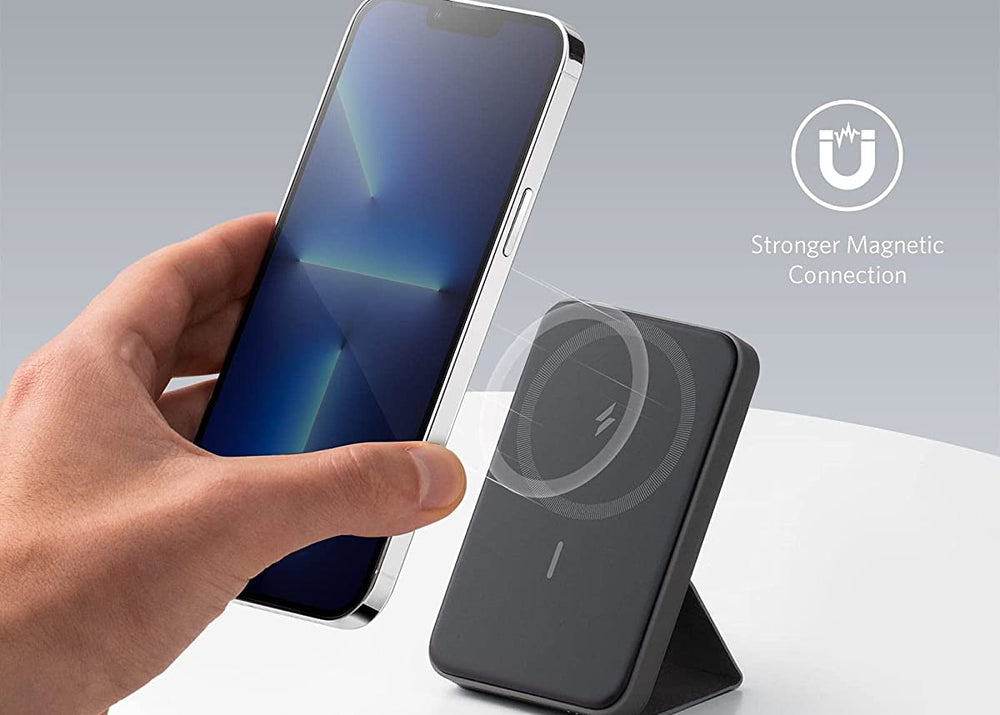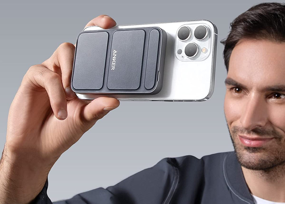 El Anker 622 MagGO (A1614H23) es un cargador portátil magnético con diseño ultradelgado y acabado en color Interstellar Gray. Compatible con MagSafe, ofrece carga inalámbrica rápida y segura para iPhone, integrando un soporte plegable que permite usar el dispositivo cómodamente mientras se carga.