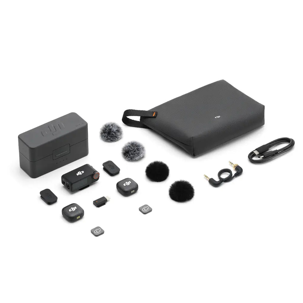 El DJI Mic 3 es un sistema de audio inalámbrico profesional diseñado para creadores exigentes. Incluye dos transmisores (TX), un receptor (RX) y un estuche de carga portátil, ofreciendo calidad de sonido superior y máxima flexibilidad en grabaciones de campo, entrevistas y producción de contenido.