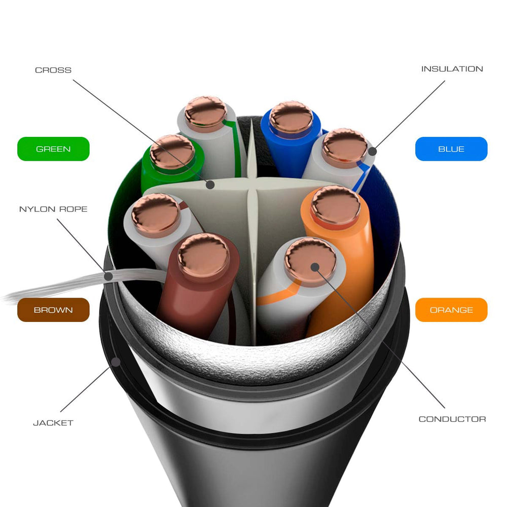 - Categoría: CAT6, soporta velocidades de hasta 1 Gbps y frecuencias de 250 MHz